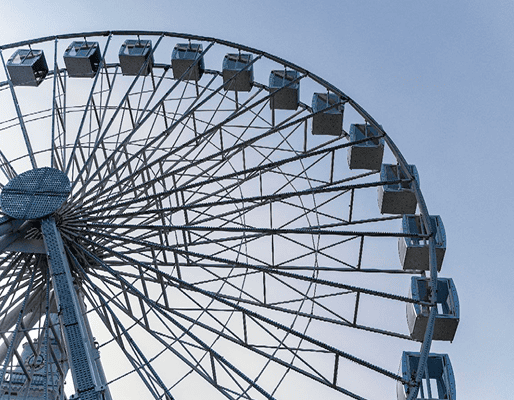 Посещение колеса обозрения гарантирует немало развлечений для детей и взрослых. Плавно набирая высоту, кабина превращается в воздушный театр с панорамным экраном: крыши домов складываются в мозаику, реки извиваются как серебряные ленты, а люди внизу кажутся ожившими точками на картине. Здесь каждый оборот — возможность найти и рассмотреть знакомые места и улицы с огромной высоты.